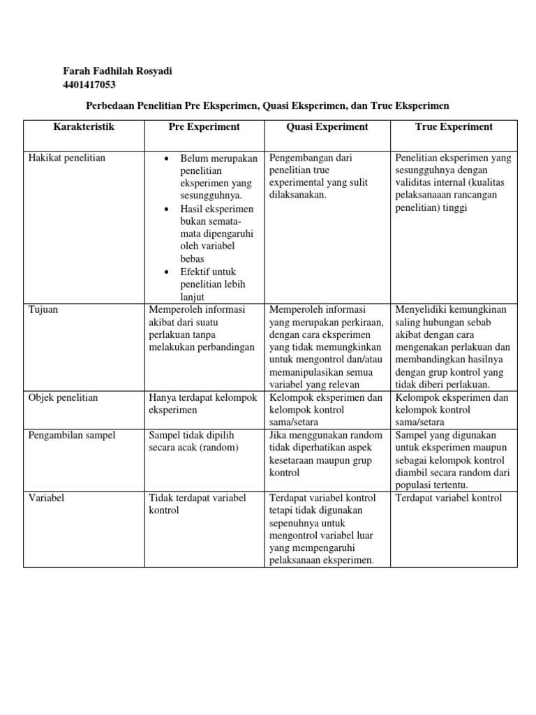 Perbedaan Penelitian Pre Eksperimen Quasi Eksperimen Dan True Eksperimen Pdf