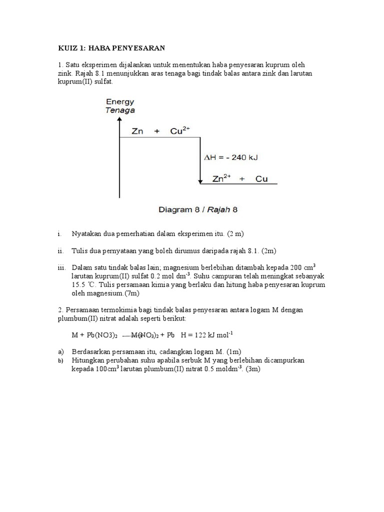 43 HABA PENYESARAN Haba penyesaran ialah perubahan haba yang berlaku apabila 1 mol logam disesarkan daripada larutan garamnya oleh logam yang lebih elektropositif. Ketumpatan 1 g cm 3 1 mark ii the heat of precipitation of leadII sulphate. Langkah-langkah untuk eksp utk haba pemendakan argentum nitrat.