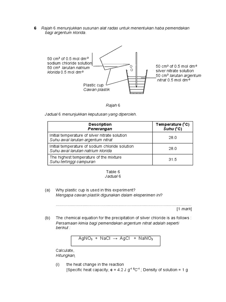 Hitungkan haba pemendakan bagi argentum klorida dalam eksperimen ini. Unit 2 Peraturan Bilik Sains.