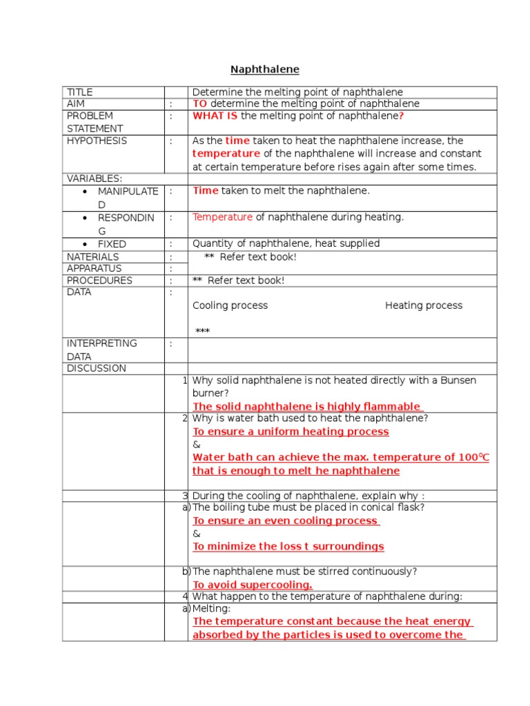 Melting And Freezing Point Of Naphthalene International Baccalaureate Chemistry Marked By Teachers Com