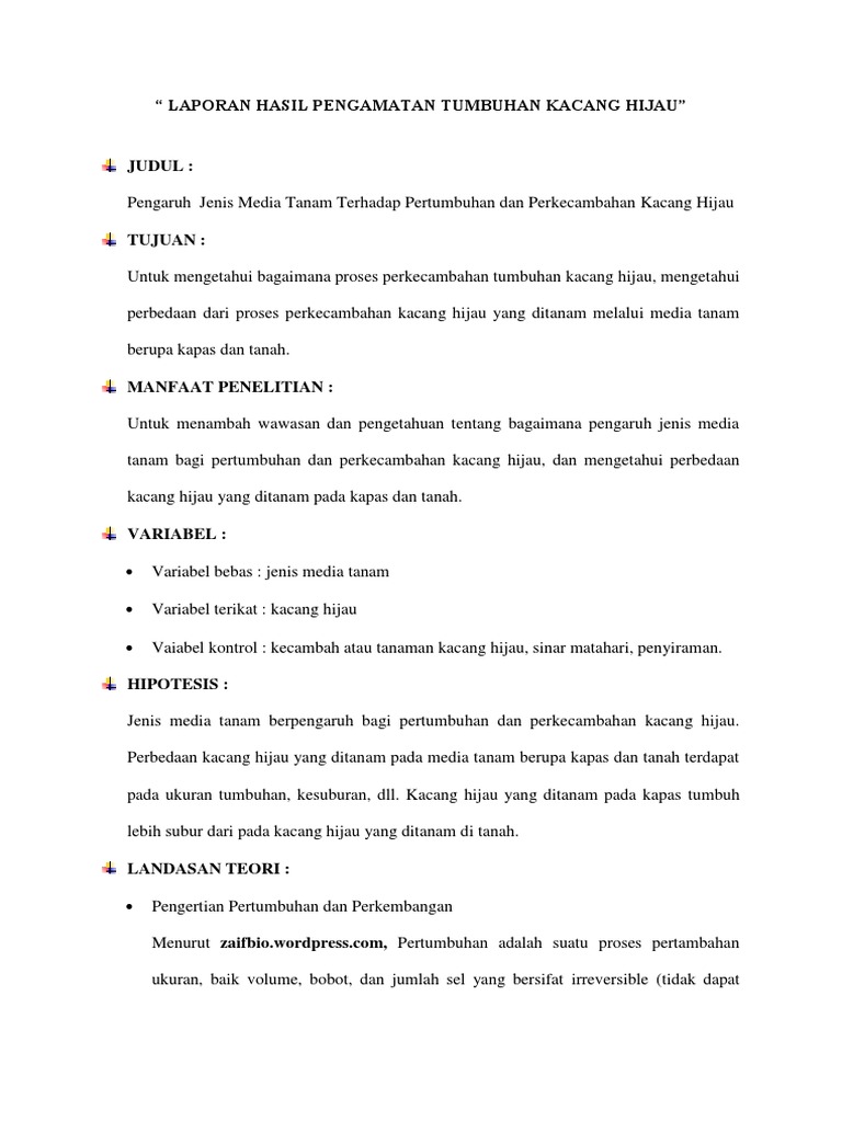 Penulisan laporan Praktikum Biologi ini dimaksudkan penulis untuk memenuhi tugas. Rendam kacang hijau selama 1 jam 3. Teori Mengenai Pertumbuhan dan Perkembangan Tumbuhan Kacang Hijau Dalam pertumbuhan dan perkembangan tumbuhan Kacang Hijau ini dasar teori yang digunakan adalah teori totipotensi yang ditulis oleh Schleiden dan Schwann yang menyatakan bahwa.