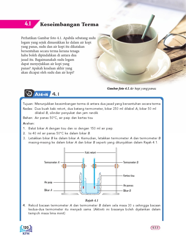 S835 Berkomunikasi tentang aplikasi haba pendam tentu dalam kehidupan harian. 444 Menentukan hubungan antara tekanan dan suhu. Ini menyebabkan makanan akan masak dengan lebih cepat kerana menyerap tenaga haba dengan banyak dalam keadaan tertutup.