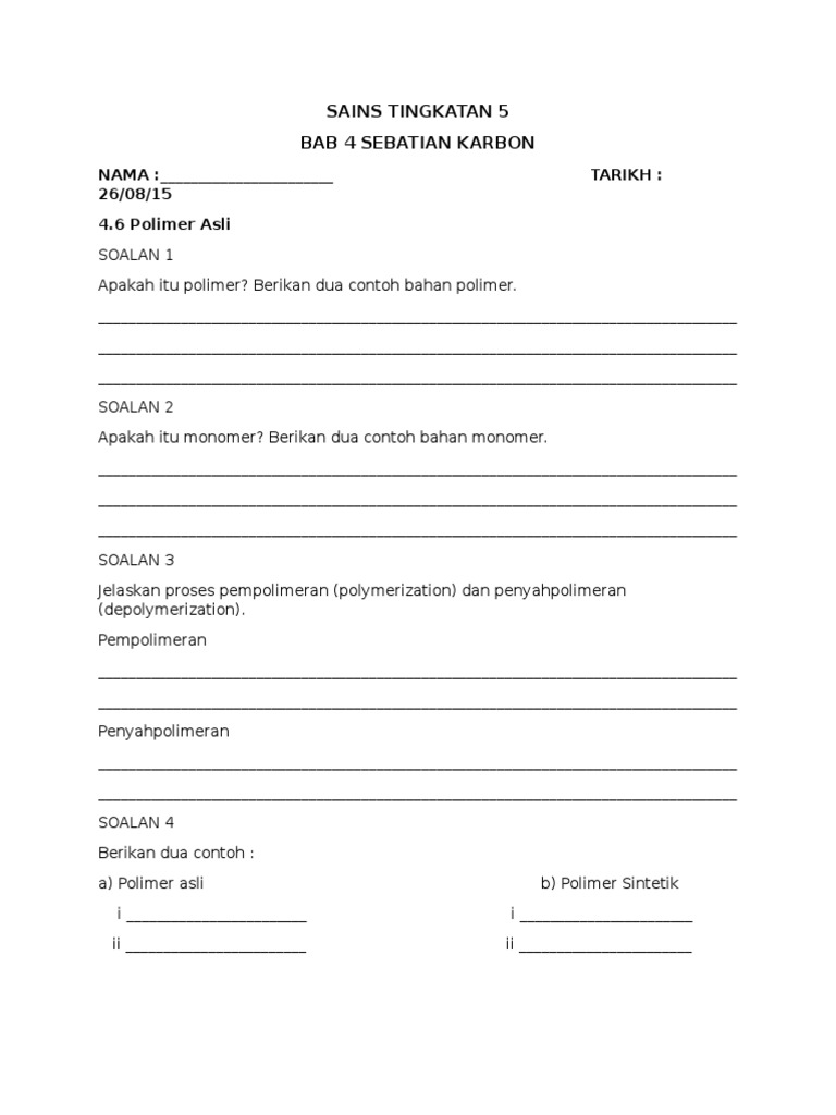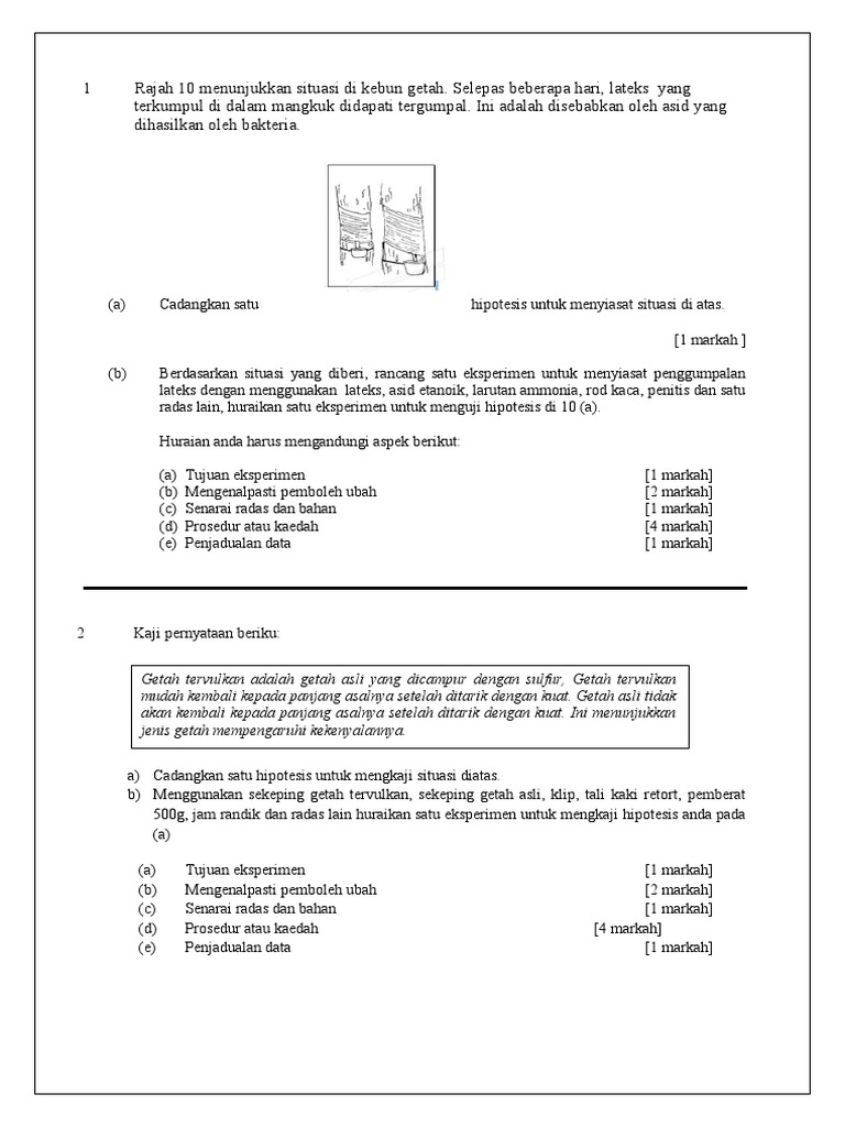 1 markah b Nyatakan pembolehubah dalam eksperimen ini. Getah tervulkan disediakan di makmal dengan merendam getah di dalam larutan disulphur diklorida atau sulfur monoklorida dalam metilbenzena. 1 jam 30 minit NAMA.