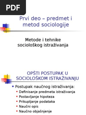 Prvi Deo Predmet I Metod Sociologije Metode I