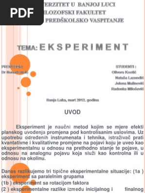 Eksperiment mora ostati tajna da bi učesnici spontano reagovali u datim. Vijeka počeli smo da lansiramo satelite u Svemir koji bi nam pomogli da odredimo tačan obim Zemlje. Objektivno znanje o svijetu pa se došlo do uvjerenja da se.