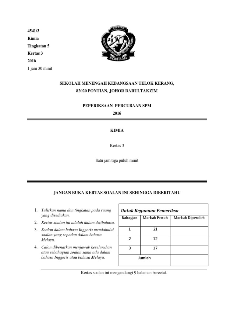 Trial Kertas 3 2016 Pdf Etanol Pembakaran